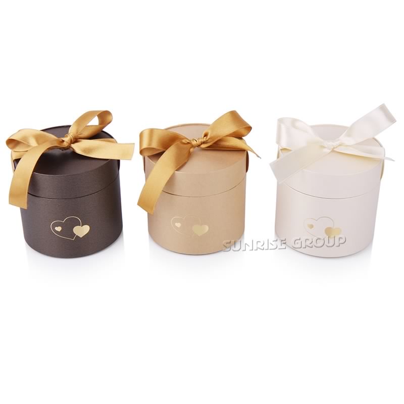• Chocolate sets packaging with different color with same size paper round hat box.